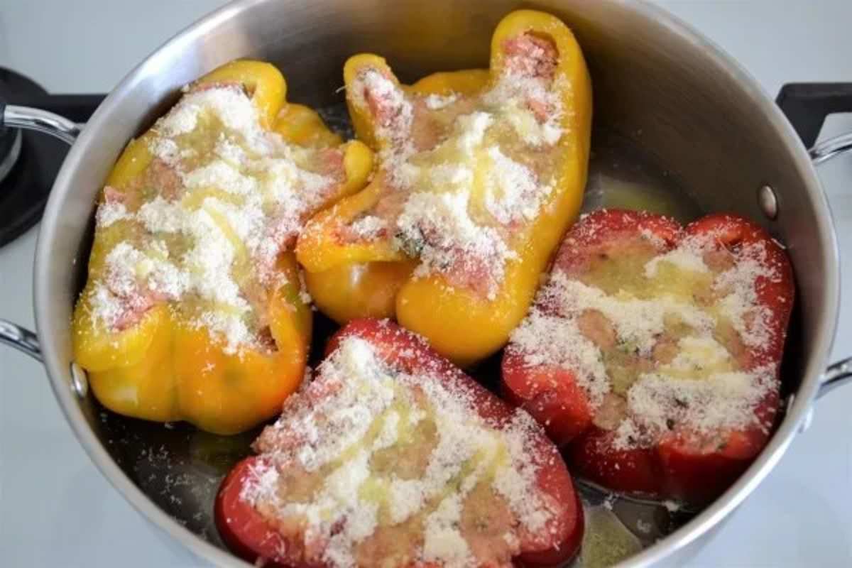 Nella mia ricetta la cottura dei peperoni viene fatta in due fasi. La prima parte avviene sul fornello e successivamente in forno. In questo modo il peperone diventerà tenero e il ripieno rimarrà morbido e umido con una deliziosa crosticina in superficie.