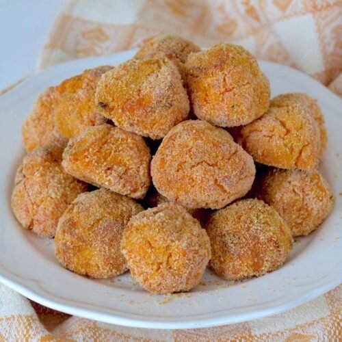 Le polpette di patate dolci e feta sono un gustoso finger food vegetariano: dorate fuori e morbide e cremose all’interno. Ti consiglio di servire nella loro semplicità o accompagnate da salse saporite o piccanti.