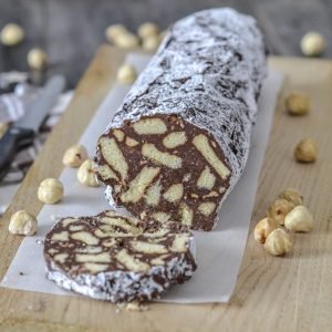 Oggi vi lascio la ricetta per preparare il salame di cioccolato alle nocciole. Un dolce goloso e molto facile da realizzare perfetto per ogni momento della giornata. Buonissimo da solo ma anche accompagnato da crema al mascarpone o panna montata.